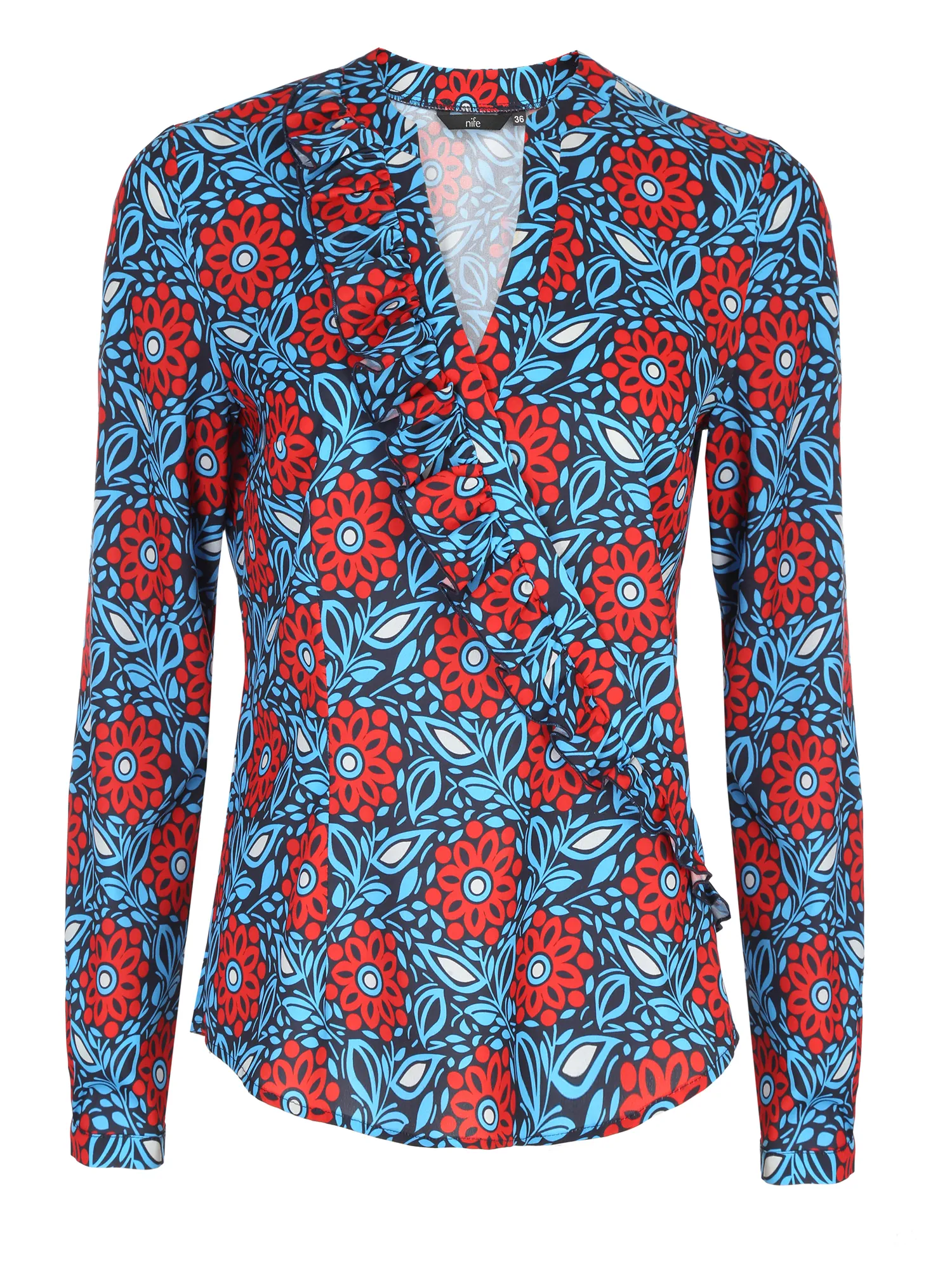 Urocza bluzka z asymetrycznymi falbanami na przodzie i długim rękawem. Model ten możesz wykorzystywać na co dzień podczas każdego wyjścia! Świetnie komponuje się ze spódnicami o każdej długości, eleganckimi spodniami oraz z jeansowymi szortami.