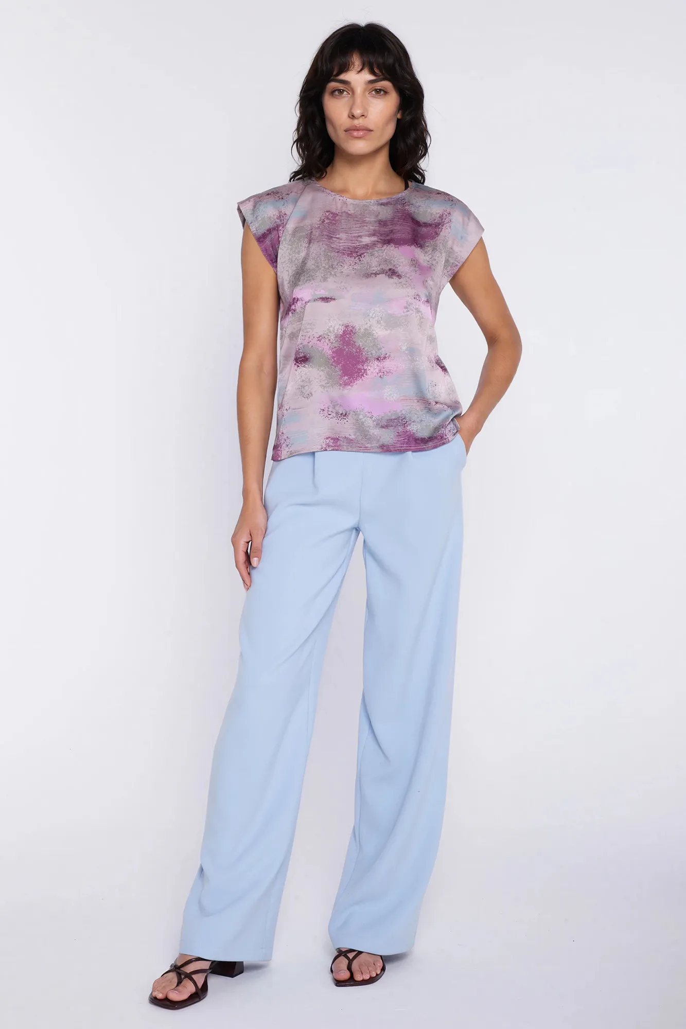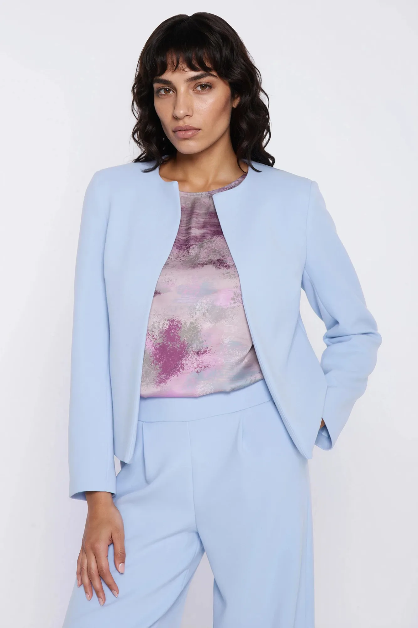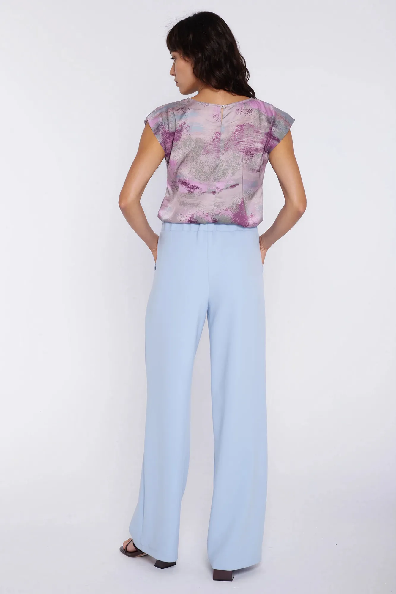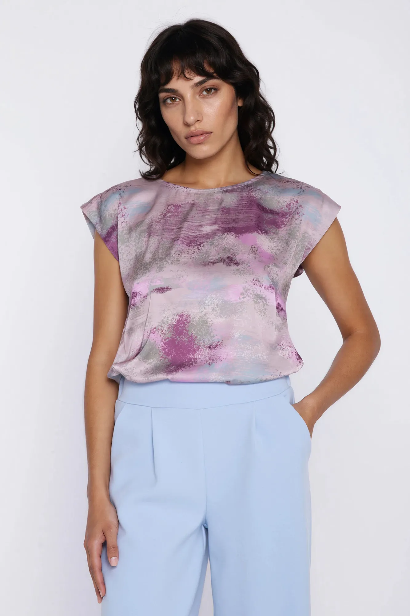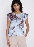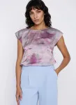 Krój regular dekolt okrągły. Krótki rękaw kimono. Z tyłu zapięcie na guzik. Rozcięcia na dole po bokach. Wkładana przez głowę.