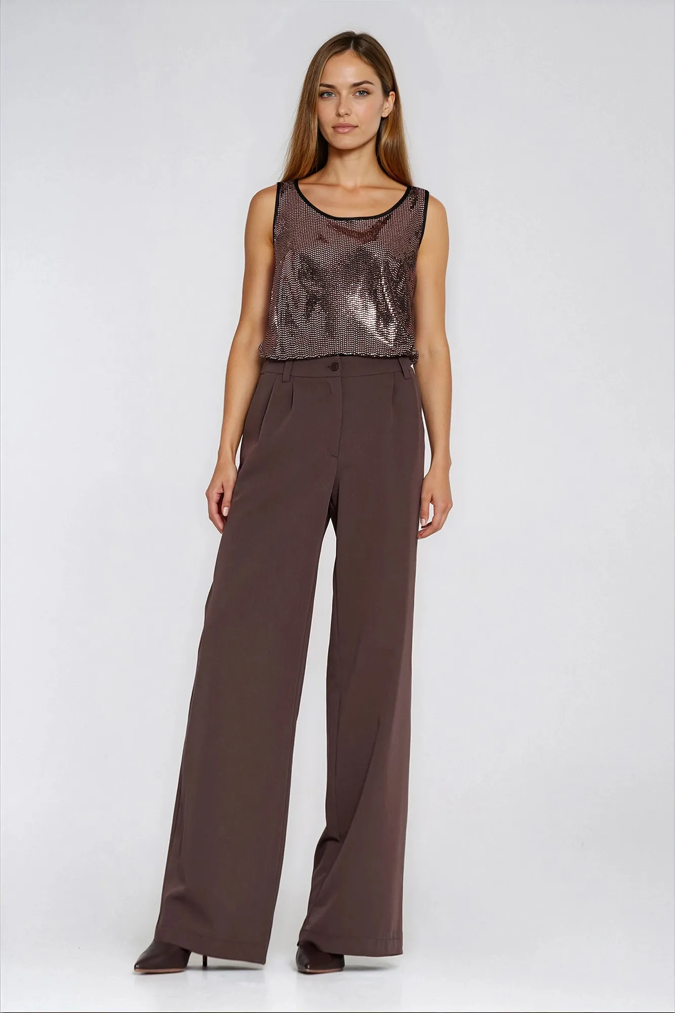 Błyszcząca bluzka na szerokich ramiączkach - miedziany