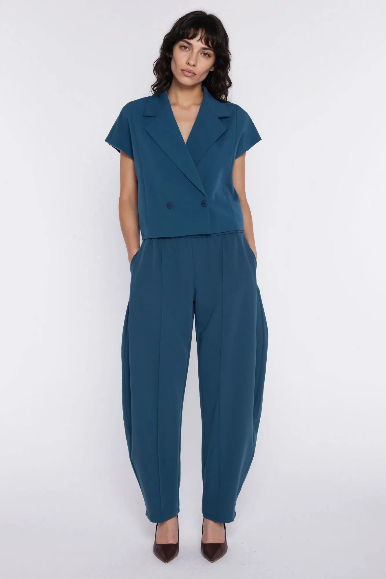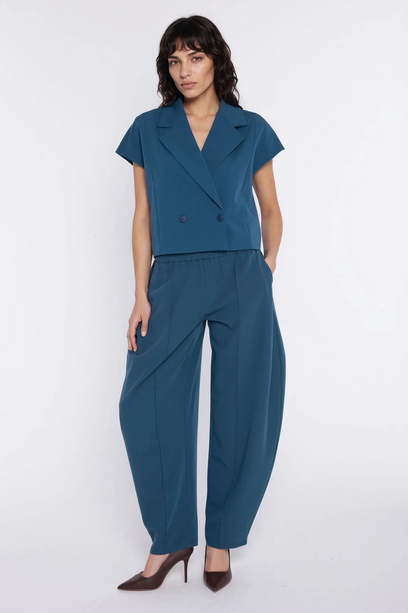 Dwurzędowy krótki żakiet - teal