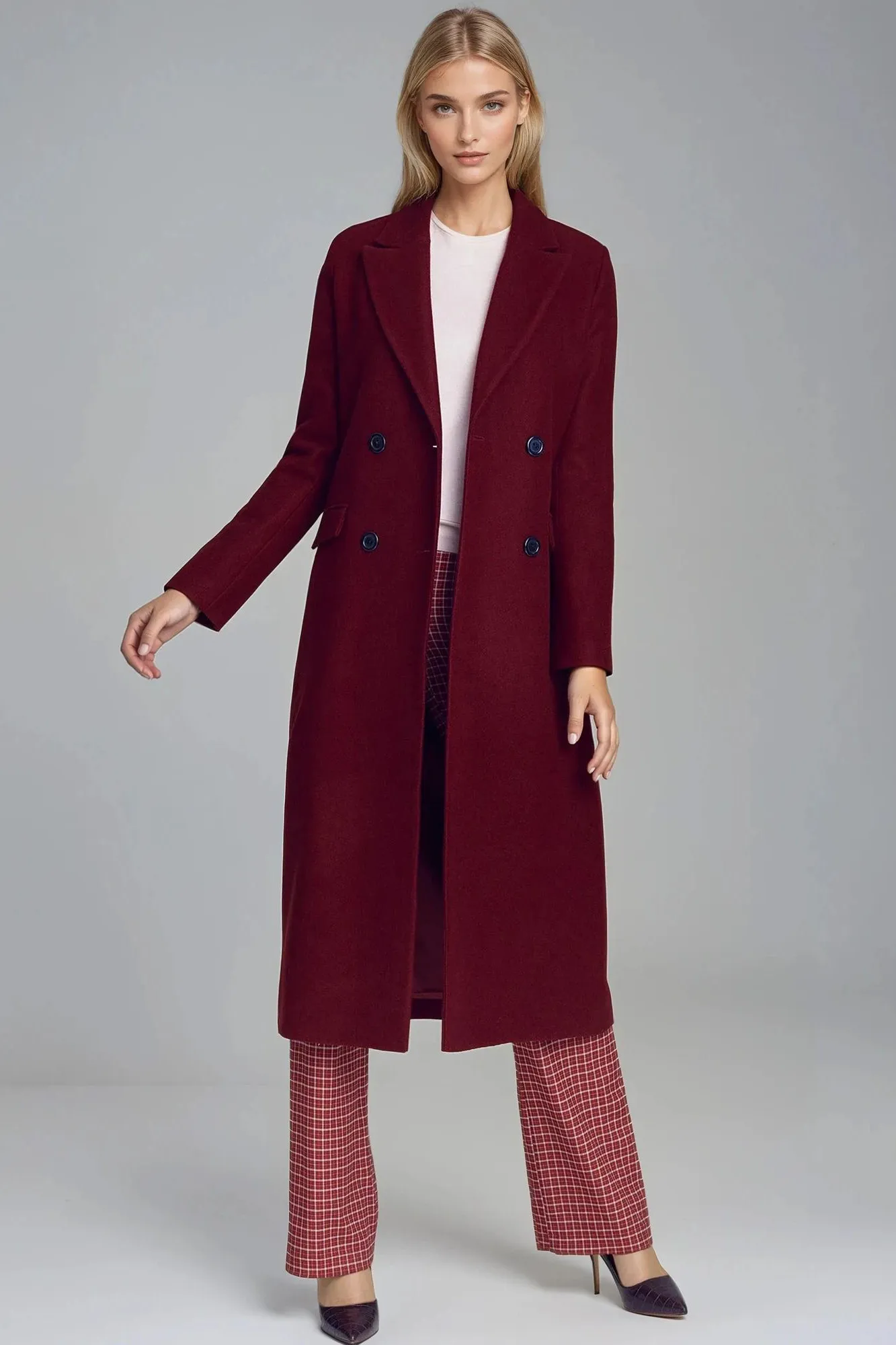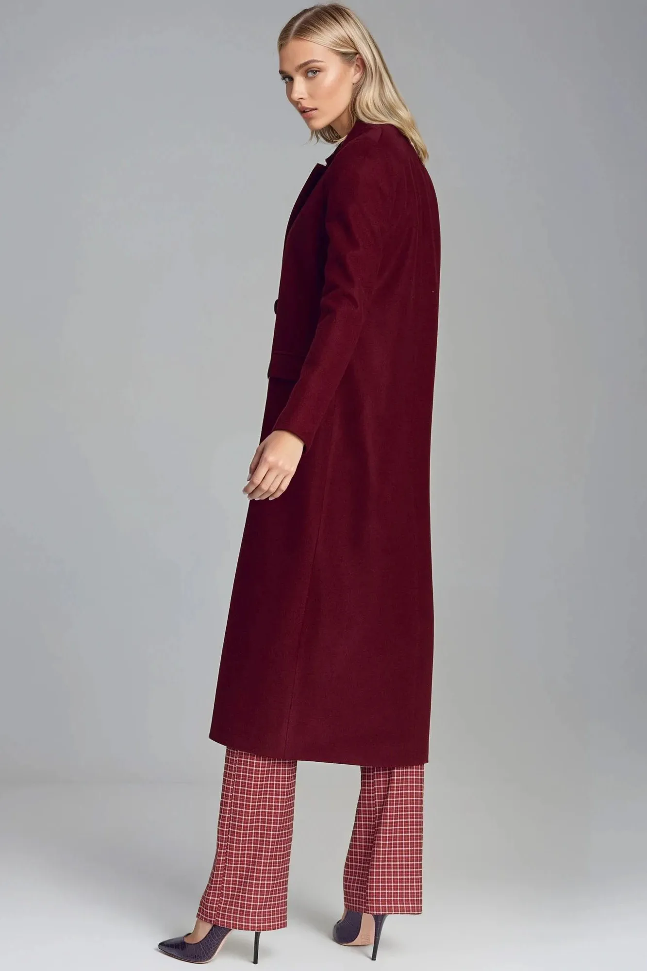 Elegancki zimowy płaszcz damski, ciepły wykonany z miękkiego materiału z domieszką wełny. Doskonałe dopełnienie każdej zimowej stylizacji. Prosty, ponadczasowy fason wpisze się zarówno w outfity oficjalne, jak i te luźniejsze. Płaszcz zapinany jest dwurzędowo, posiada klasyczny kołnierz i kieszenie. Moda biurowa!