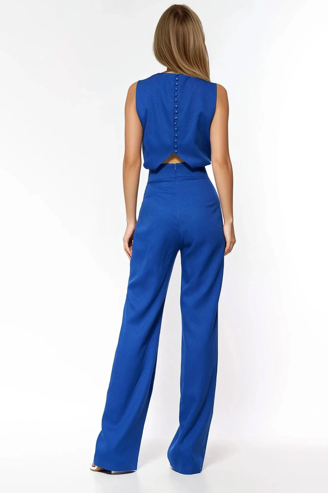 Niezwykle elegancki i kobiecy kombinezon to nasza najnowsza propozycja! Mocno podkreśli talię i dzięki prostym nogawkom wydłuży nogi. Tył kombinezonu jest zapinany na subtelne guziki i delikatnie odsłania plecy - idealnie sprawdzi się na wieczorne wyjście w zestawieniu ze szpilkami.