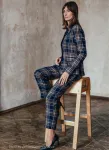 Krój fit, dopasowane. Średni stan. Nogawka zwężająca do dołu, zakończona delikatnym rozcięciem z boku. Zaprasowane kanty z przodu i z tyłu. Zapięcie na suwak i 1 guzik. Klasyczne kieszenie z przodu i imitacje kieszeni z tyłu.