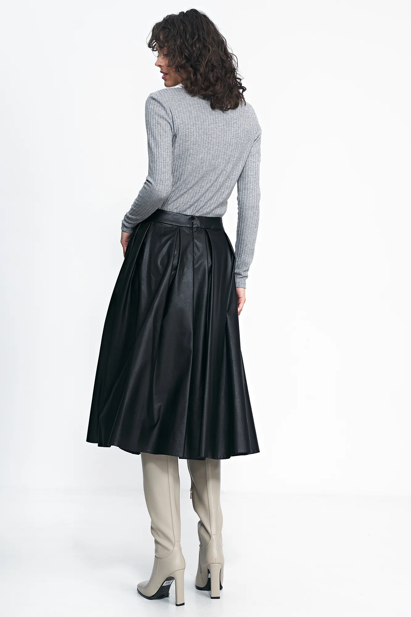 Suchaskirthasnotyetbeenwithus!Midiskirtmadeofmaterialimitatingleather, hasabeltatthewaist,thankstowhichitwillperfectlyemphasizeyourfigure.Zipperedattheback.Pleatson the beltline and midilengthwillemphasizethewaistandlengthenthesilhouette.Itwillperfectlyfitinto autumn stylizationwithankle boots,highbootsandthicksweaters.