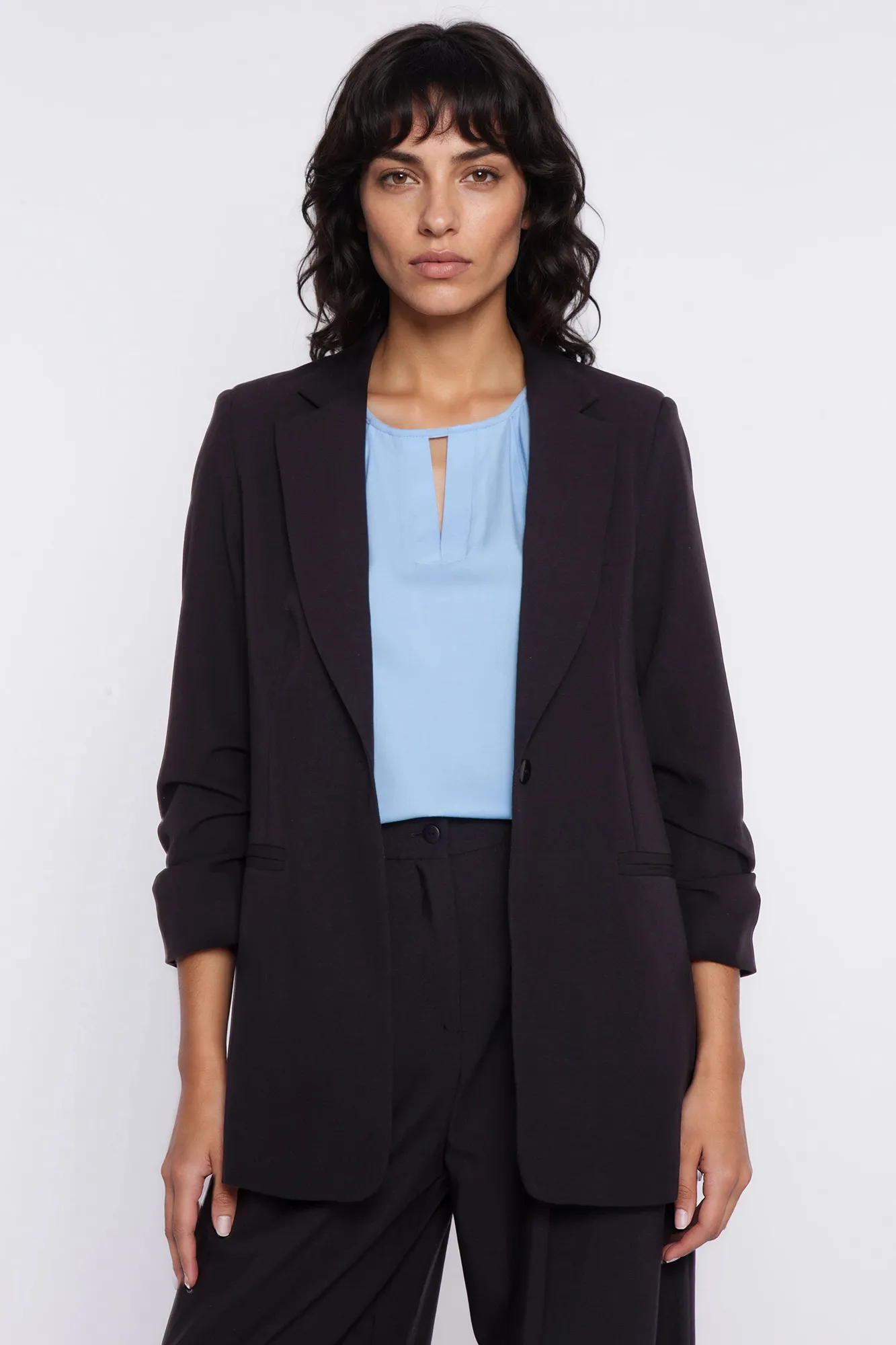 Model is 173 cm tall and wears 36 size.
