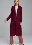 Elegant, warm, long coat made of soft material with a touch of wool. The perfect complement to any autumn styling. A simple, timeless cut will fit in both official outfits and casual ones. The coat is fastened with two rows, has a classic collar and pockets.