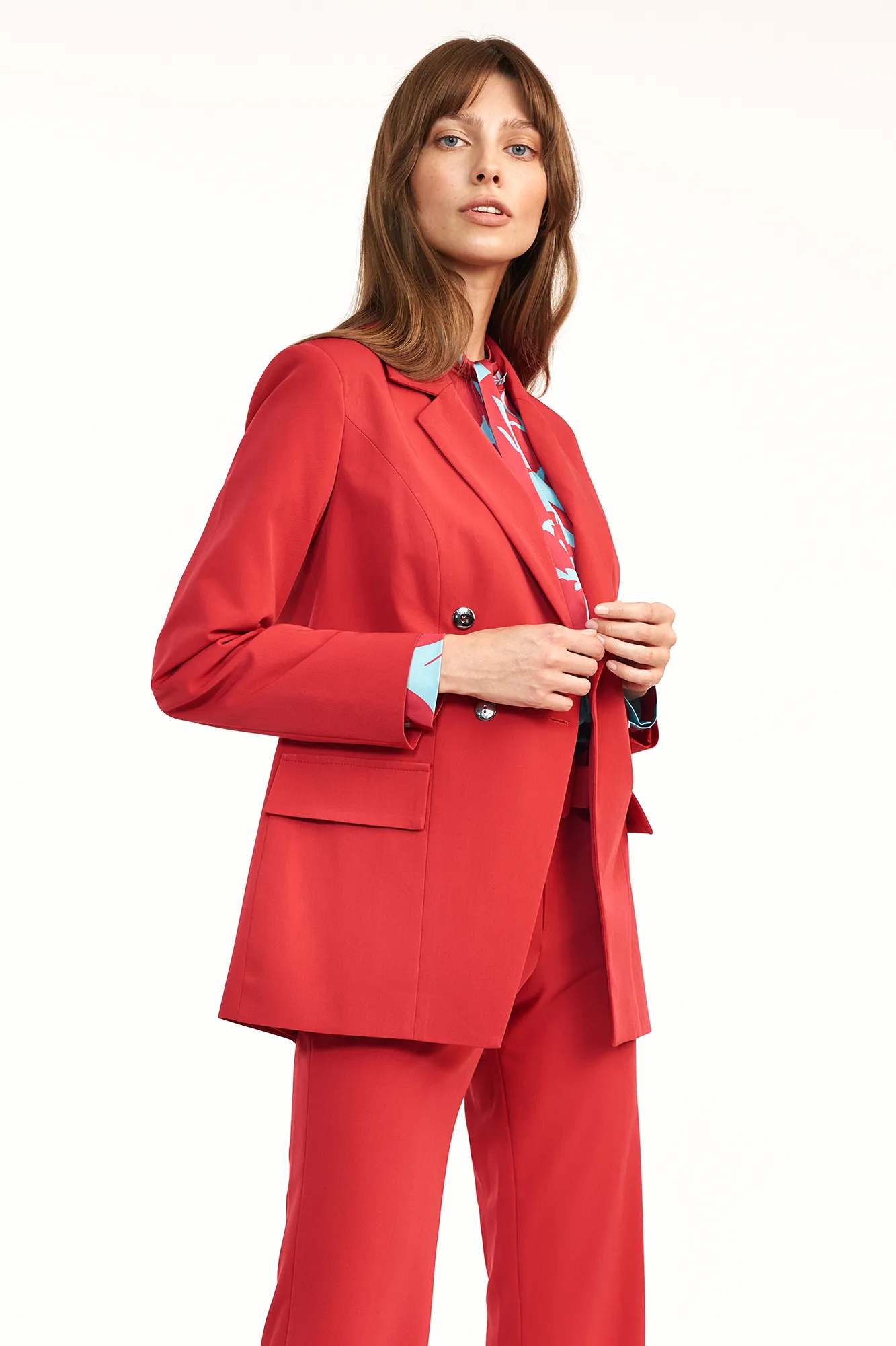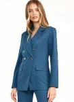 Double-row, strongly waisted jacket in autumn colors fits perfectly on any silhouette. This model is slightly elongated so it is perfect for pants with a raised waist. It looks great even unbuttoned. This jacket definitely attracts attention and gives the character of the styling.