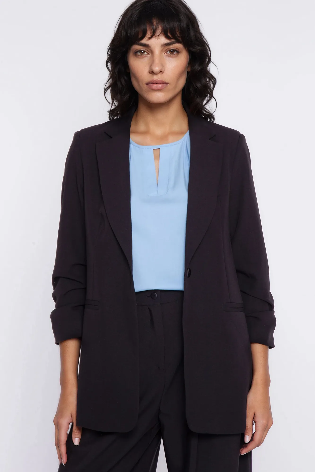 Regular fit. Notched lapels. 3/4 sleeves with gathered cuffs. Single-button fastening. Faux front pockets. Shoulder pads. Fully lined.