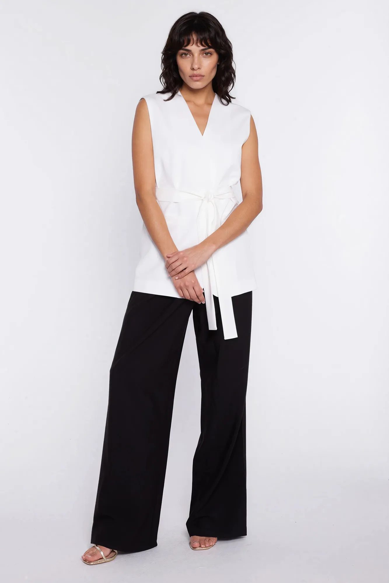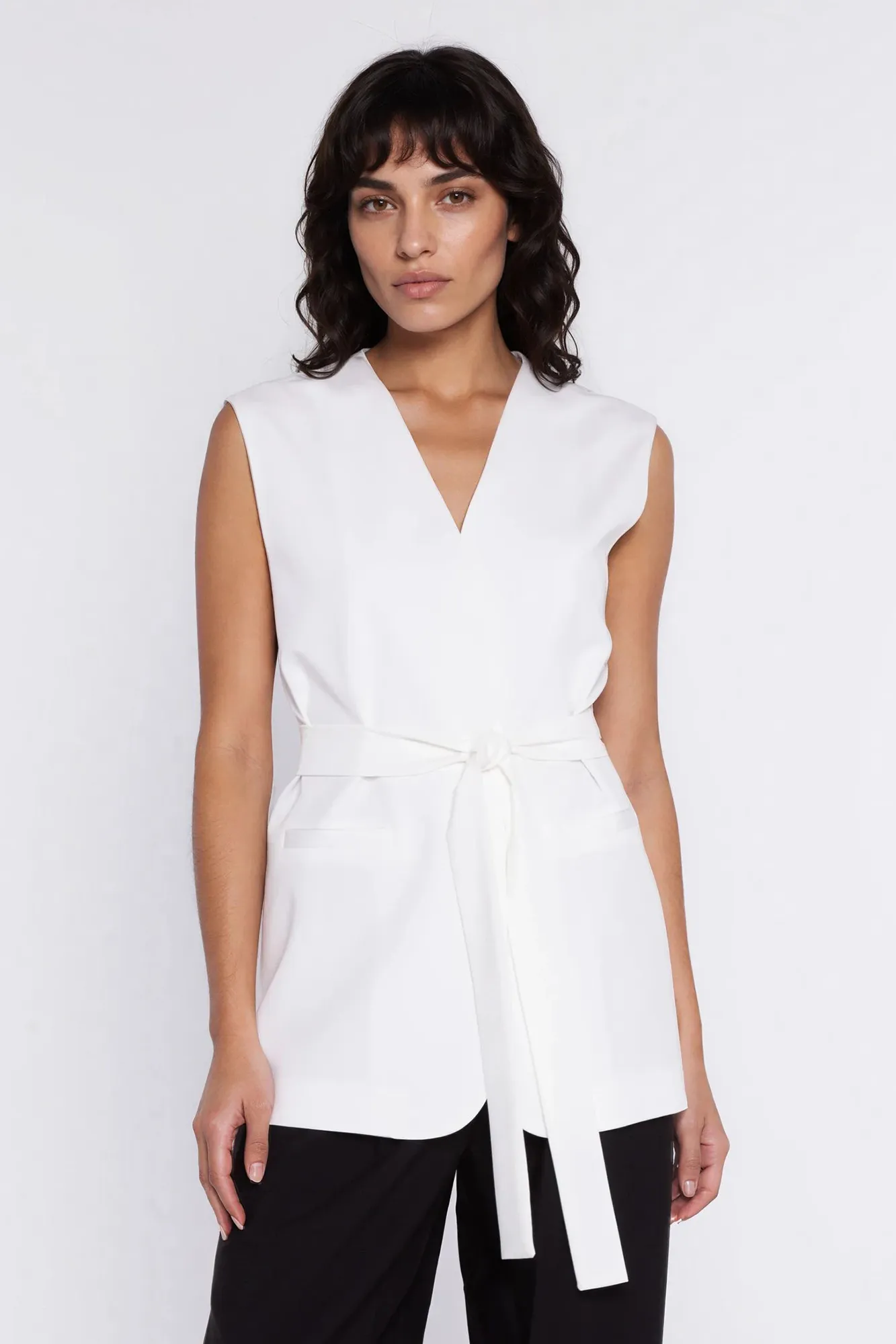 Regular fit. Wrap-style V-neckline. No fastening. Waist tie. Faux front pockets. Fully lined. Includes a fabric belt.