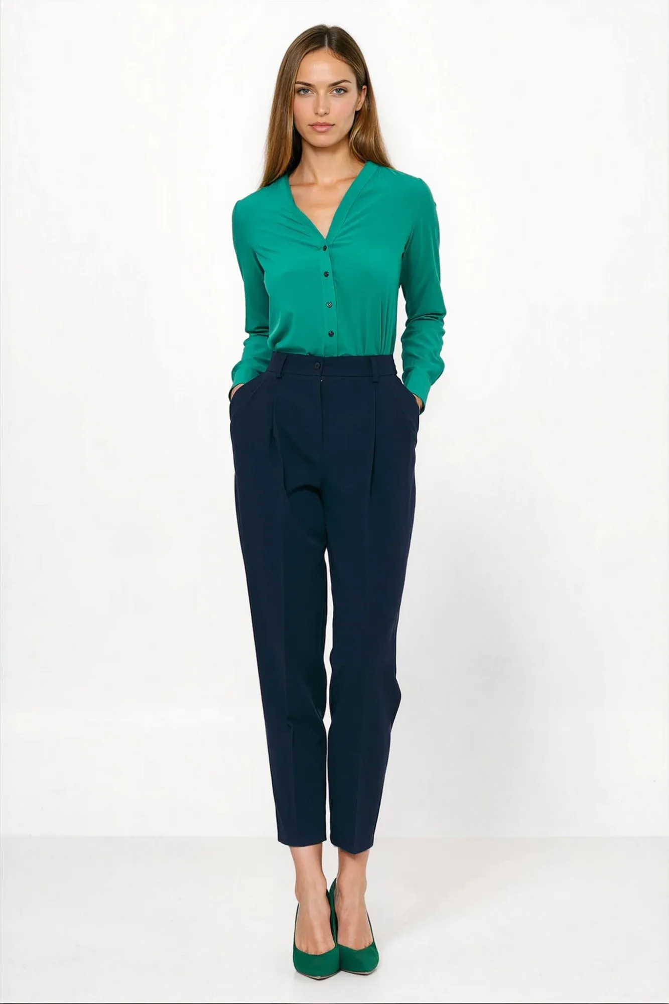 High-waistedballoontrousersareauniversalpropositionthatis an idealbaseforanofficeoutfit.Theylookgreatwith a whiteshirtandashortjacket,creating an elegantsuit.The pants aremadeofmaterialwiththeadditionofviscose.Onthesidestherearepracticalpockets.Composition:74.8% polyester, 23.1% viscose,2.1%elastane.