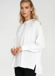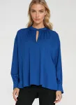Krój oversize. Materiał wiskoza. Dekolt w kształcie łezki zapinany na guzik. Długi rękaw wykończony mankietem. Marszczenia przy dekolcie i mankietach.