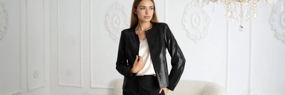 Błyszcząca sukienka z falbanami na ramionach - czarny