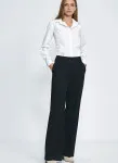 Po wielu sezonach dominacji wąskich spodni, powróciły modele z szerokimi nogawkami, tak zwane wide leg. Spodnie tego typu tworzą zgrany duet wraz z marynarka w tym samym wzorze. Posiadają lekko podwyższony stan, dzięki czemu wydłużają optycznie sylwetkę.