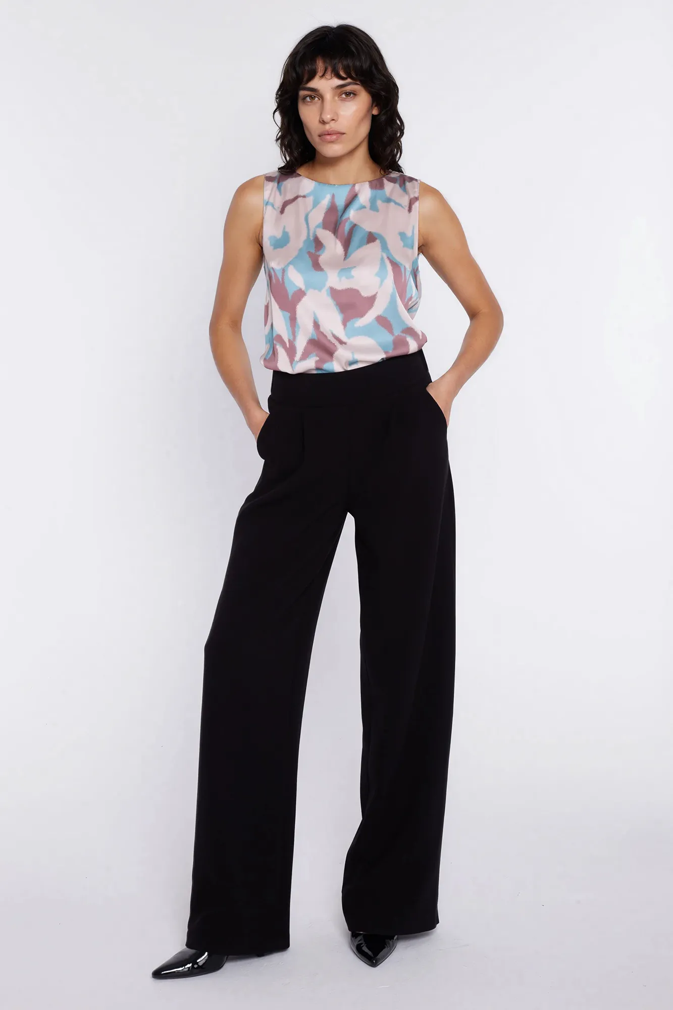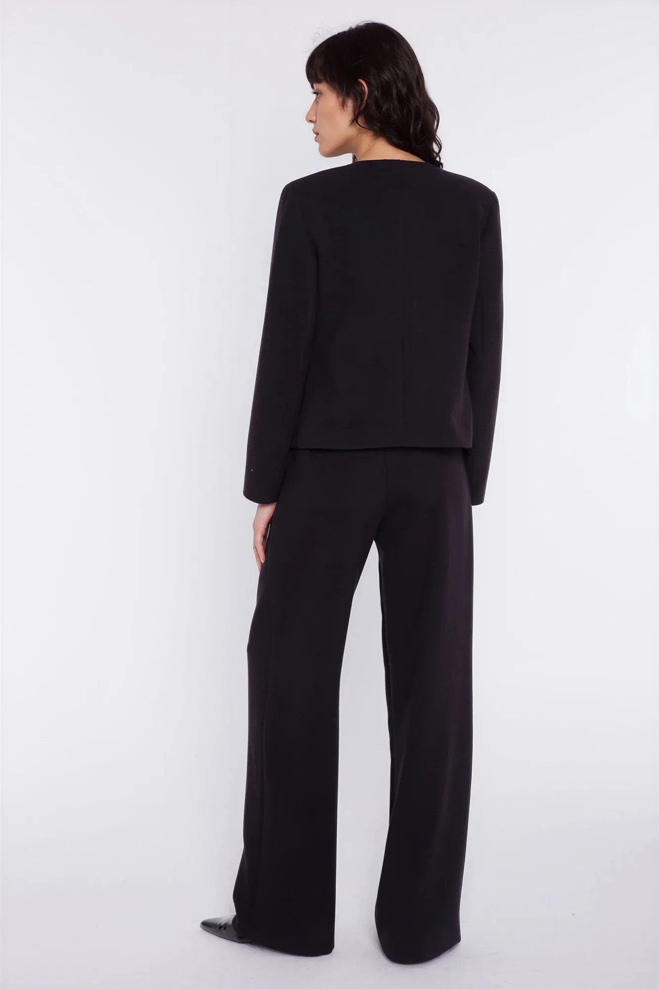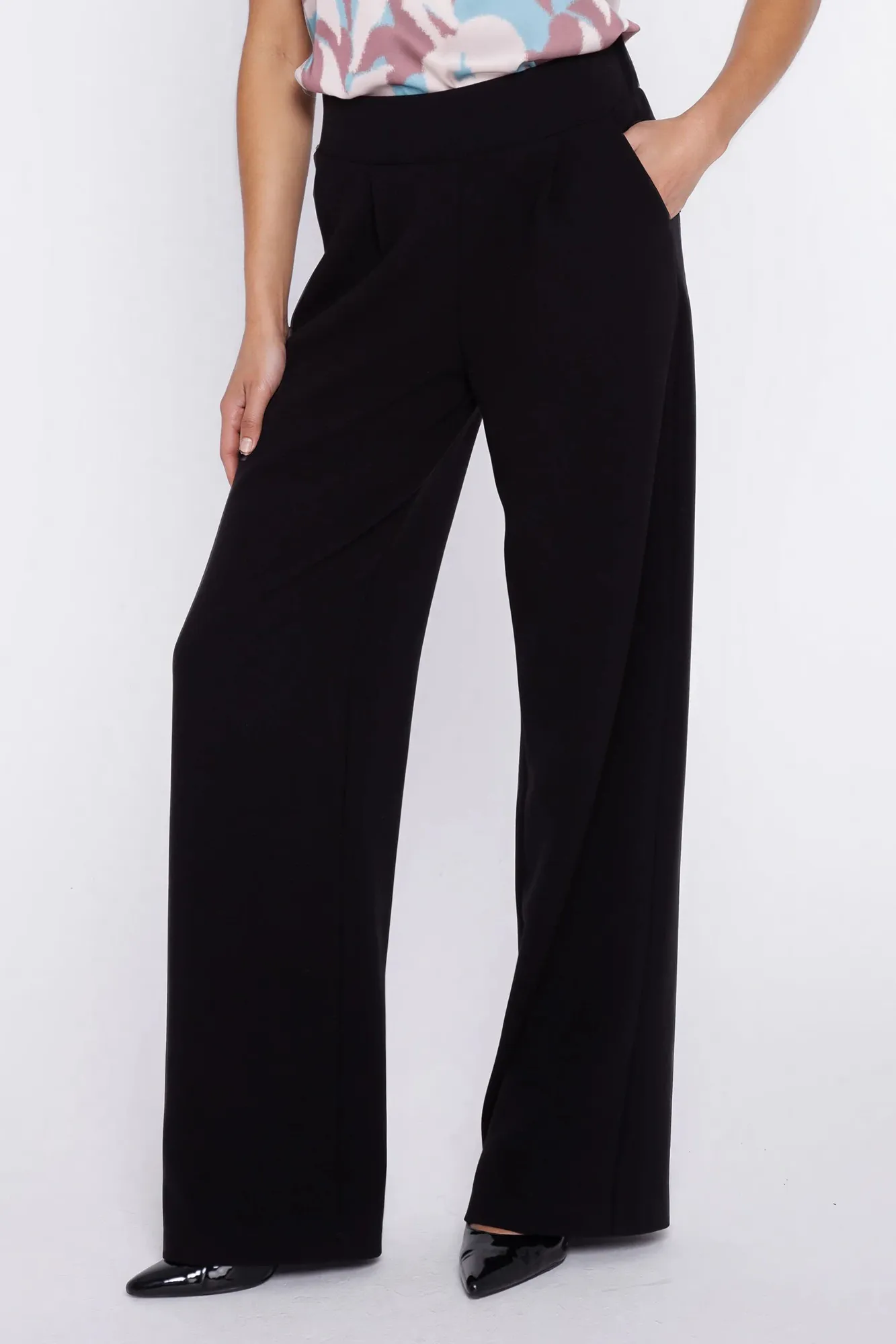 Spodnie z szerokim pasem i zakładkami - czarny
