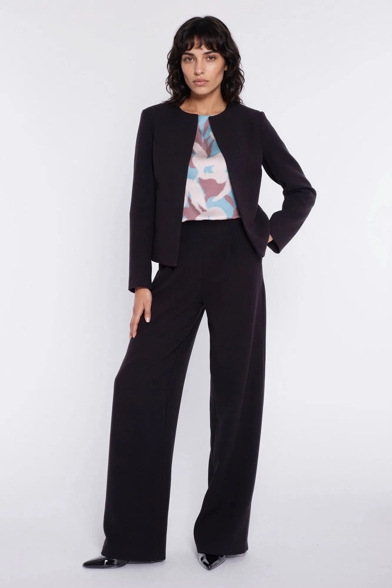 Skład: 63% poliester, 33% wiskoza, 4% elastan