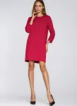 Krój relaxed fit. Fason w literę "A". Okrągły dekolt pod szyję. Rękaw 3/4 z nieszablonowymi zakładkami. Długość przed kolana. Zapięcie na suwak z tyłu.