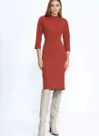 W zestawieniu z długimi kozakami bądź botkami to strzał w 10! Sukienka mocno taliowana, zapinana na napy na linii dekoltu z boku na zamek. Idealnie sprawdzi się do pracy na chłodniejsze dni.